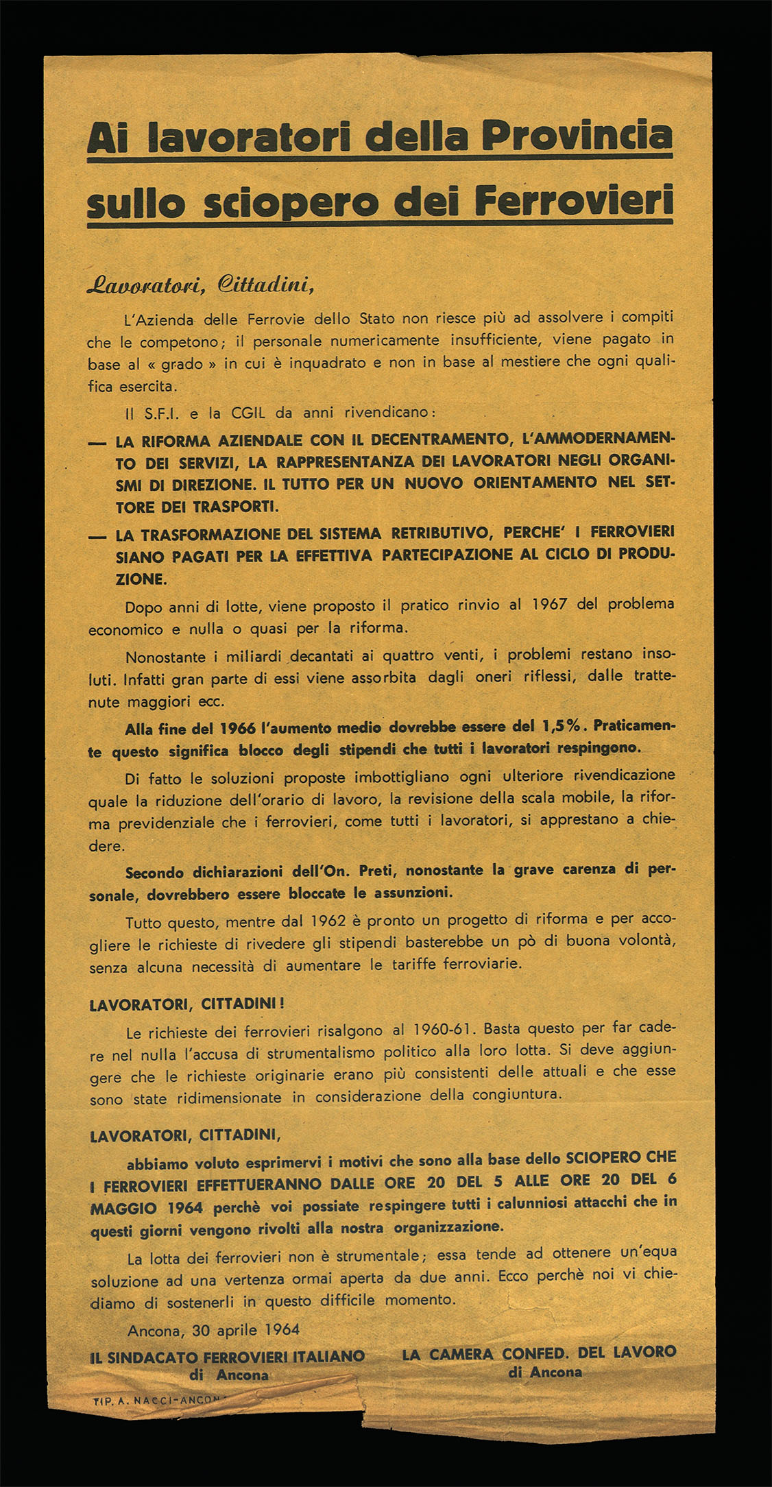Volantino del Sindacato ferrovieri per lo sciopero del 5-6 maggio 1964.
