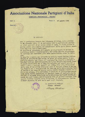 Doc. sottoscritto dal segretario del Comitato provinciale di Pesaro e Urbino dell'ANPI.