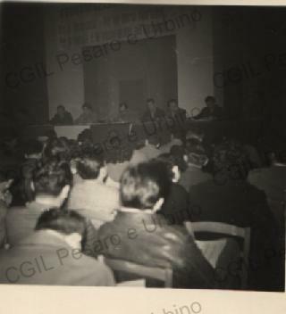 Pubblico in sala al IV Congresso provinciale della Federmezzadri tenuto a Pesaro il 17 e 18 dic. 1955.