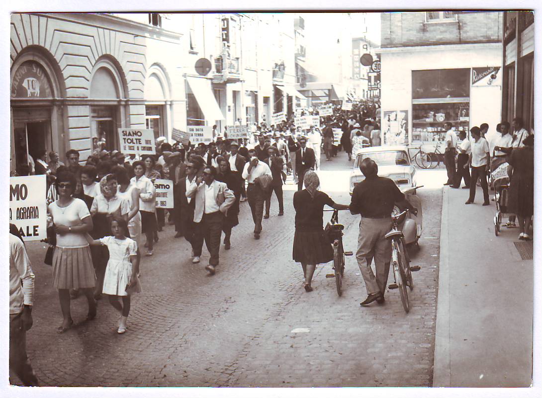 Manifestazione dei mezzadri. Sfilata del corteo in Via Branca.