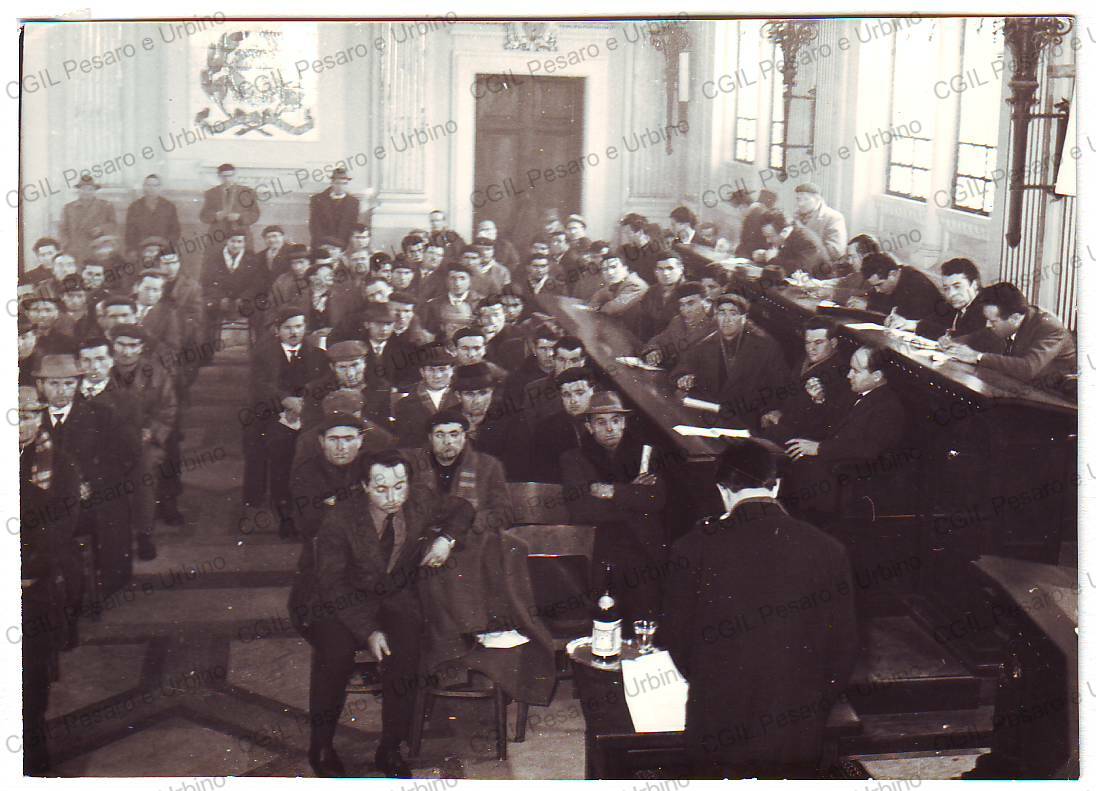 VII Congresso della Federmezzadri, tenuto nella Sala della Provincia Adele Bei il 2 febbraio 1963. Oratore di spalle di fronte al pubblico.